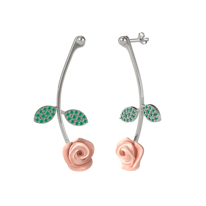 Kök zümrüt 8 ayar beyaz altın küpe (Pembe mineli)