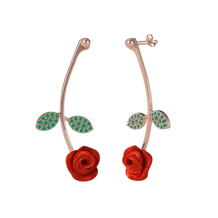 Kök zümrüt 925 ayar rose altın kaplama gümüş küpe (Kırmızı mineli)