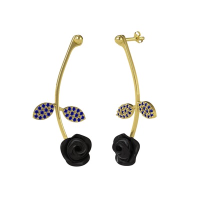 Lab safir 18 ayar altın küpe (Siyah mineli)