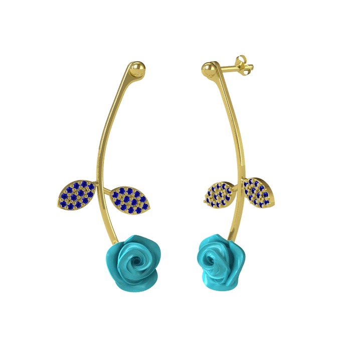 Lab safir 18 ayar altın küpe (Turkuaz mineli)
