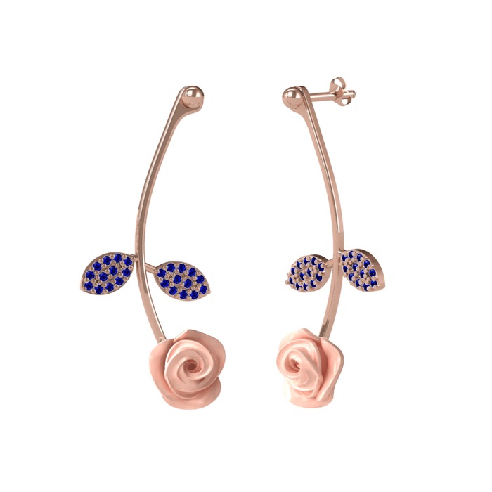 Lab safir 18 ayar rose altın küpe (Pembe mineli)