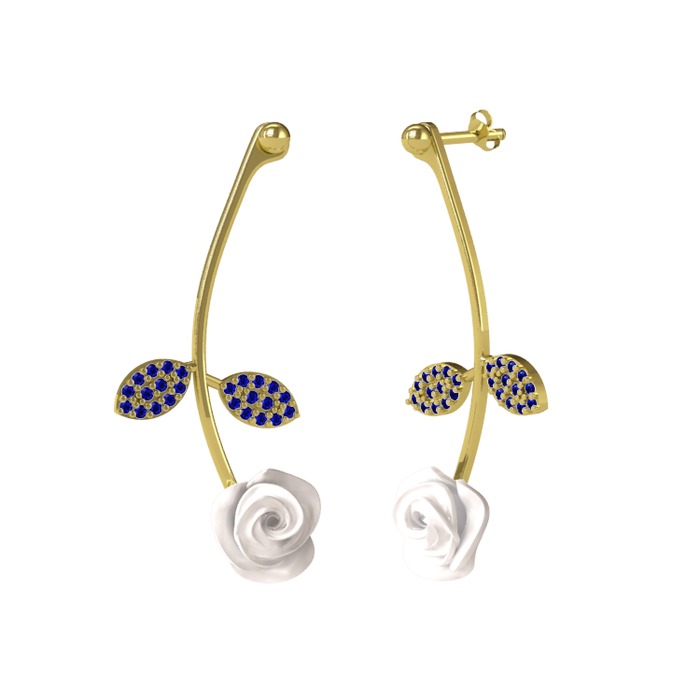 Lab safir 8 ayar altın küpe (Beyaz mineli)