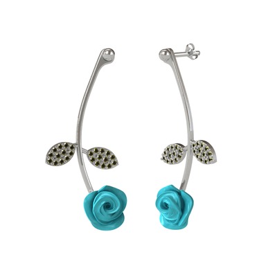 Peridot 8 ayar beyaz altın küpe (Turkuaz mineli)