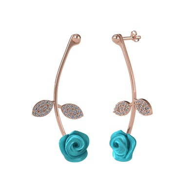 Pırlanta 8 ayar rose altın küpe (1.056 karat, turkuaz mineli)