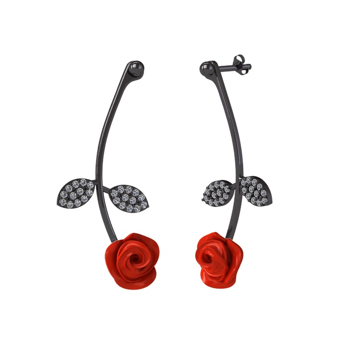 Pırlanta 925 ayar siyah rodyum kaplama gümüş küpe (1.056 karat, kırmızı mineli)