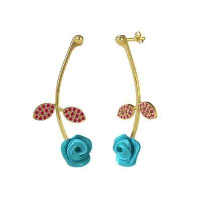 Rodolit garnet 14 ayar altın küpe (Turkuaz mineli)