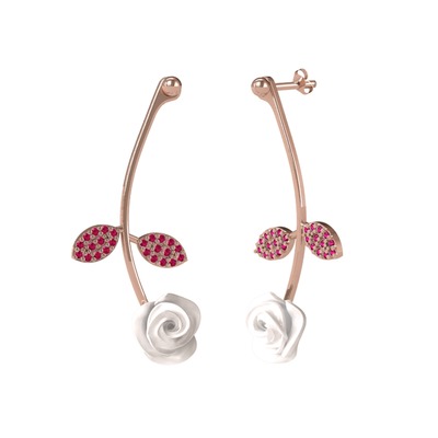 Rodolit garnet 14 ayar rose altın küpe (Beyaz mineli)