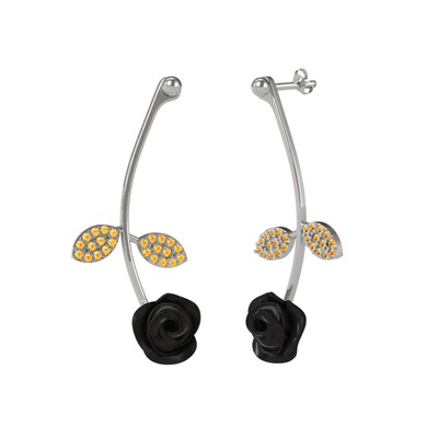 Sitrin 18 ayar beyaz altın küpe (Siyah mineli)