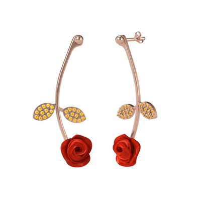 Sitrin 18 ayar rose altın küpe (Kırmızı mineli)