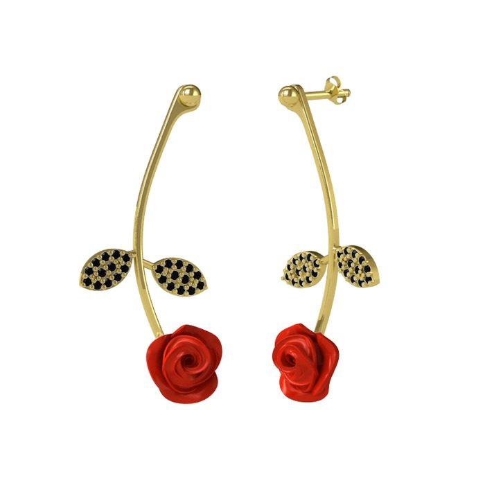 Siyah zirkon 14 ayar altın küpe (Kırmızı mineli)