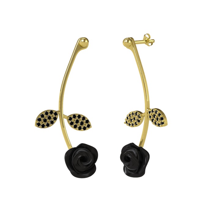 Siyah zirkon 925 ayar altın kaplama gümüş küpe (Siyah mineli)