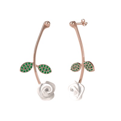 Yeşil kuvars 14 ayar rose altın küpe (Beyaz mineli)