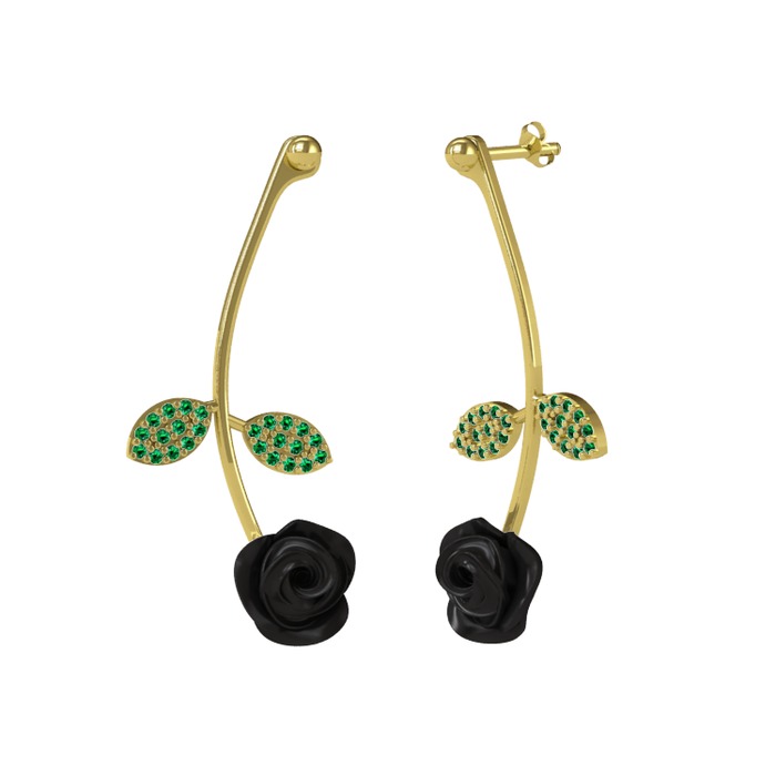 Yeşil kuvars 18 ayar altın küpe (Siyah mineli)