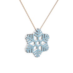 Akuamarin ve beyaz zirkon 925 ayar gümüş kolye (40 cm rose altın rolo zincir)