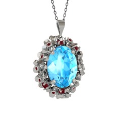 Garnet ve akuamarin 8 ayar beyaz altın kolye (40 cm gümüş rolo zincir)