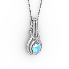 Pırlanta ve akuamarin 925 ayar gümüş kolye (0.015 karat, 40 cm gümüş rolo zincir)
