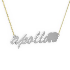 14 ayar beyaz altın kolye (5 karakterli arial, 40 cm gümüş rolo zincir)