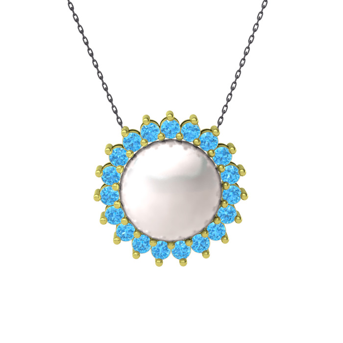 Inci ve akuamarin 14 ayar altın kolye (40 cm gümüş rolo zincir)