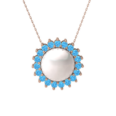 Inci ve akuamarin 18 ayar rose altın kolye (40 cm rose altın rolo zincir)