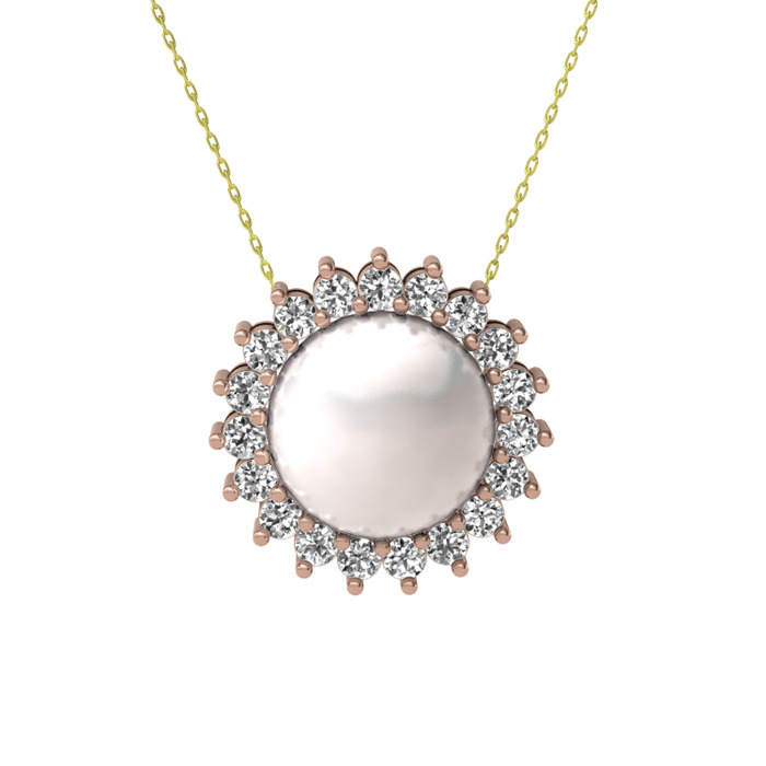 Inci ve beyaz zirkon 925 ayar rose altın kaplama gümüş kolye (40 cm altın rolo zincir)