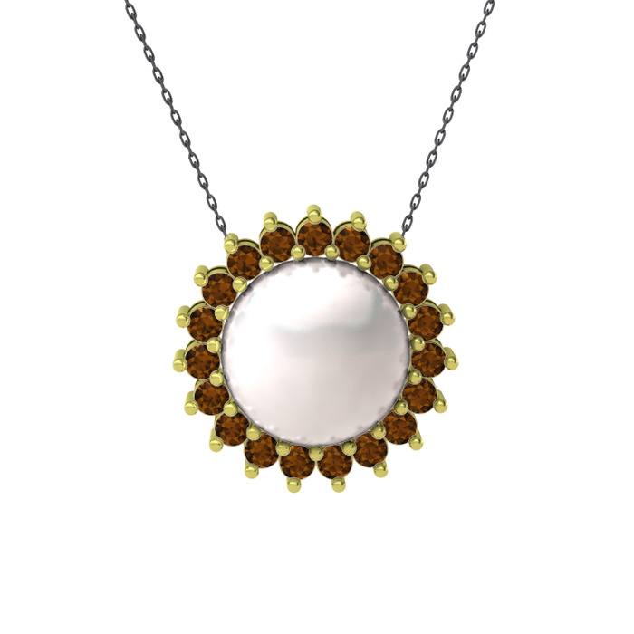 Inci ve dumanlı kuvars 8 ayar altın kolye (40 cm gümüş rolo zincir)