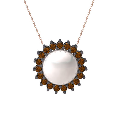 Inci ve dumanlı kuvars 925 ayar siyah rodyum kaplama gümüş kolye (40 cm gümüş rolo zincir)