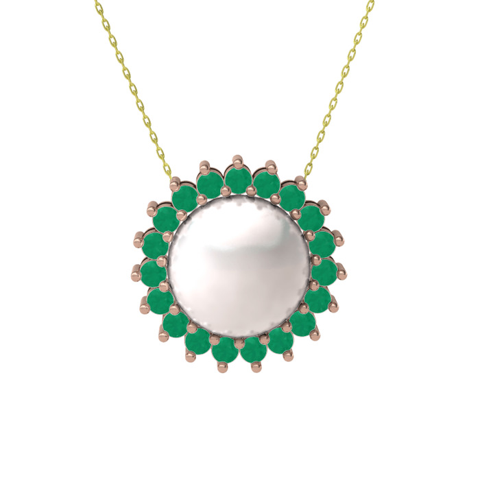 Inci ve kök zümrüt 14 ayar rose altın kolye (40 cm altın rolo zincir)