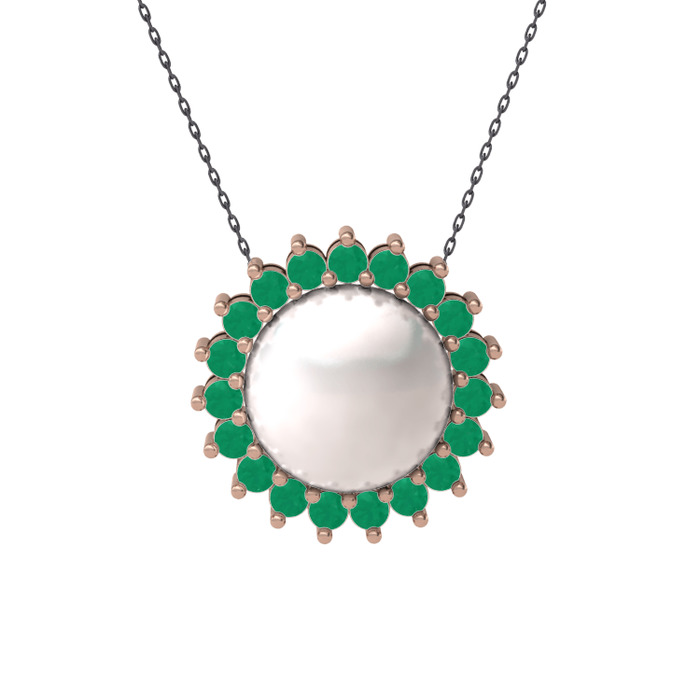 Inci ve kök zümrüt 14 ayar rose altın kolye (40 cm gümüş rolo zincir)
