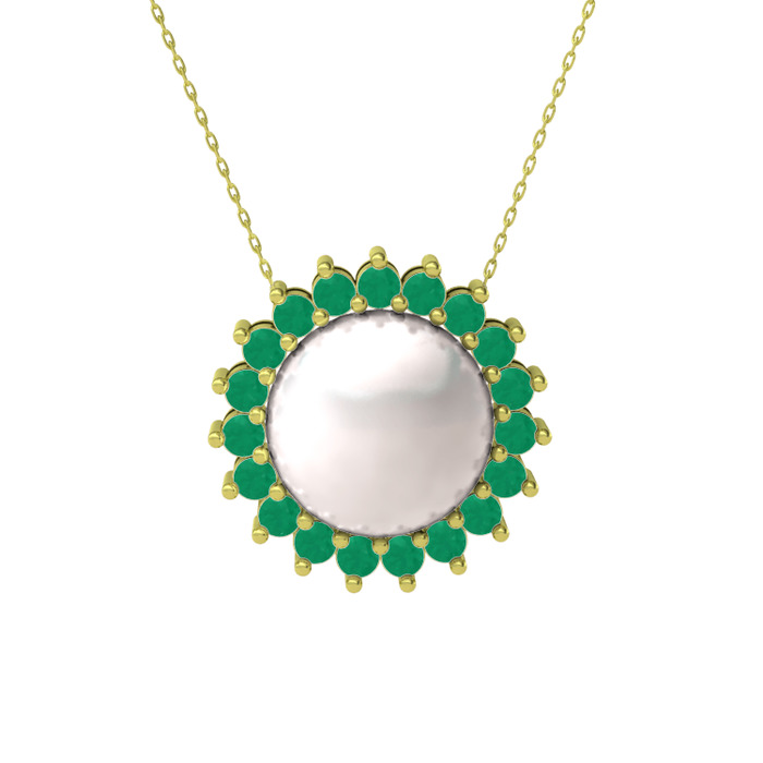 Inci ve kök zümrüt 18 ayar altın kolye (40 cm gümüş rolo zincir)