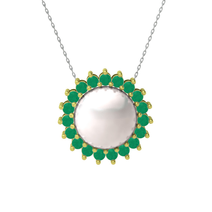 Inci ve kök zümrüt 925 ayar altın kaplama gümüş kolye (40 cm beyaz altın rolo zincir)