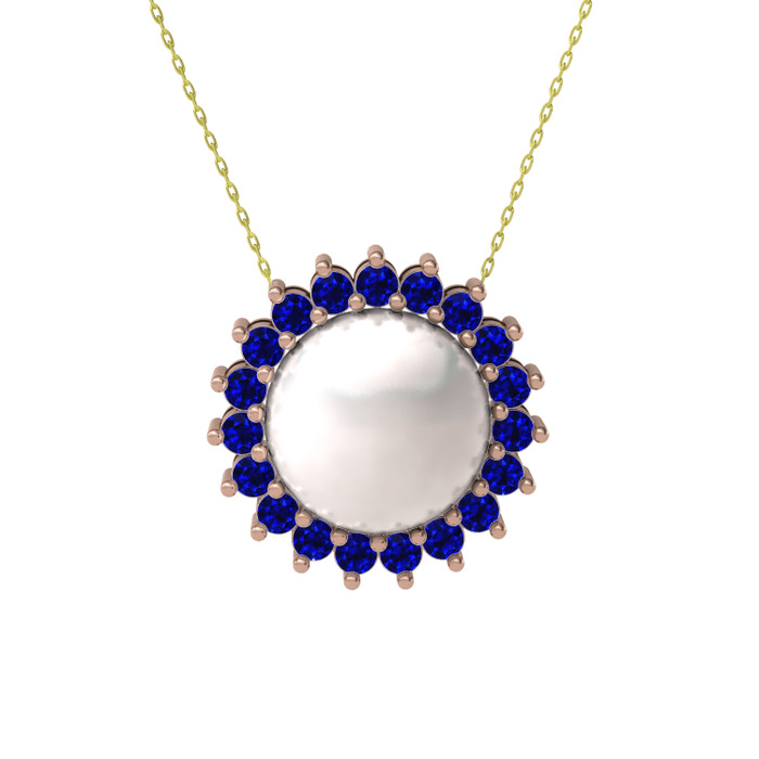 Inci ve lab safir 14 ayar rose altın kolye (40 cm altın rolo zincir)