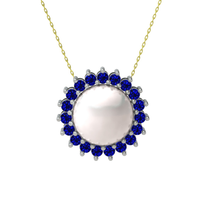 Inci ve lab safir 8 ayar beyaz altın kolye (40 cm altın rolo zincir)