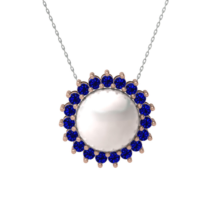 Inci ve lab safir 8 ayar rose altın kolye (40 cm beyaz altın rolo zincir)