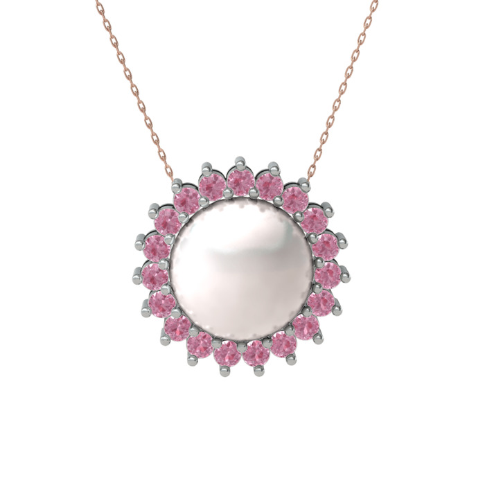Inci ve pembe kuvars 18 ayar beyaz altın kolye (40 cm rose altın rolo zincir)