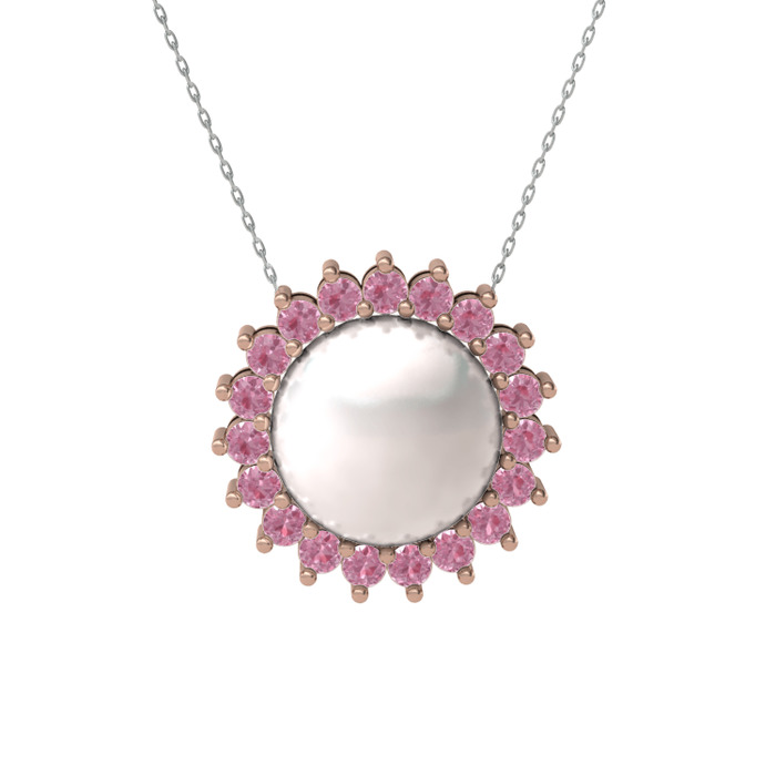 Inci ve pembe kuvars 8 ayar rose altın kolye (40 cm beyaz altın rolo zincir)