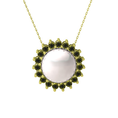 Inci ve peridot 14 ayar altın kolye (40 cm altın rolo zincir)