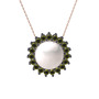Inci ve peridot 925 ayar siyah rodyum kaplama gümüş kolye (40 cm rose altın rolo zincir)