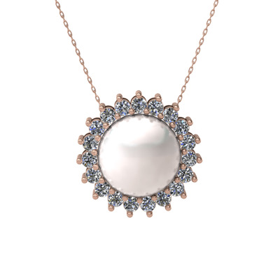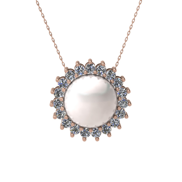 Inci ve pırlanta 14 ayar rose altın kolye (0.285 karat, 40 cm gümüş rolo zincir)