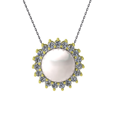 Inci ve pırlanta 8 ayar altın kolye (0.285 karat, 40 cm gümüş rolo zincir)