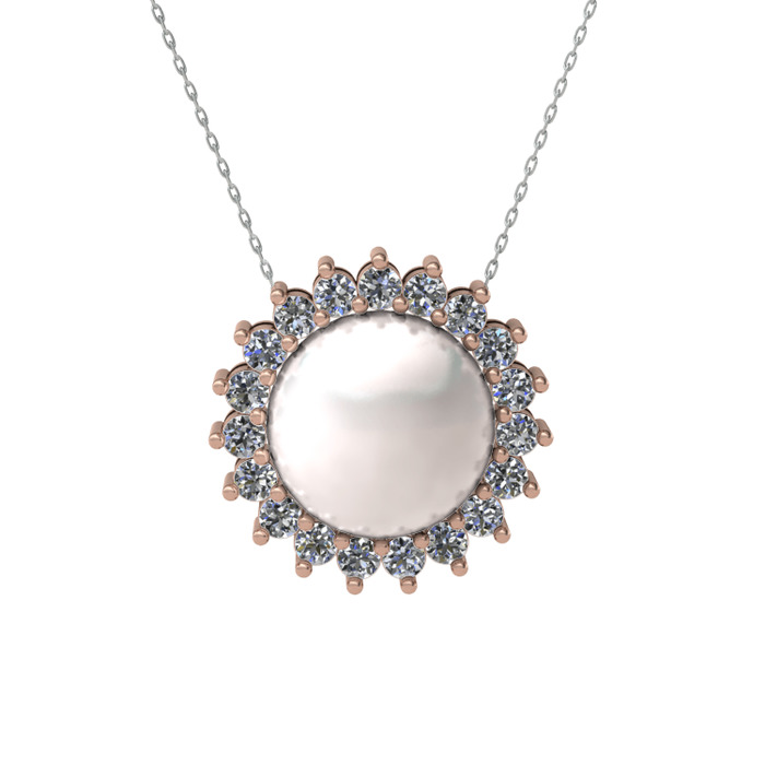 Inci ve pırlanta 8 ayar rose altın kolye (0.285 karat, 40 cm beyaz altın rolo zincir)