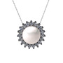 Inci ve pırlanta 925 ayar siyah rodyum kaplama gümüş kolye (0.285 karat, 40 cm beyaz altın rolo zincir)