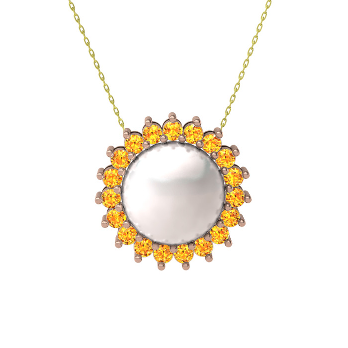 Inci ve sitrin 14 ayar rose altın kolye (40 cm gümüş rolo zincir)