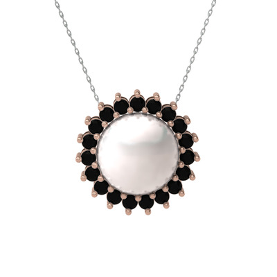 Inci ve siyah zirkon 14 ayar rose altın kolye (40 cm beyaz altın rolo zincir)
