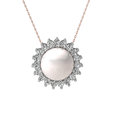 Inci ve swarovski 8 ayar beyaz altın kolye (40 cm rose altın rolo zincir)