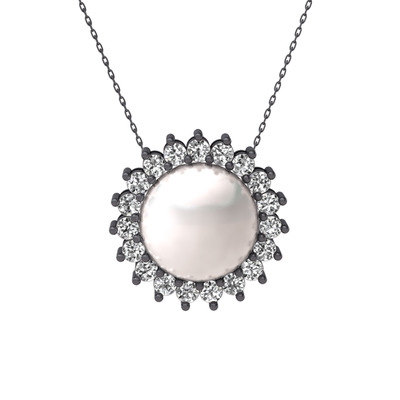 Inci ve swarovski 925 ayar siyah rodyum kaplama gümüş kolye (40 cm gümüş rolo zincir)