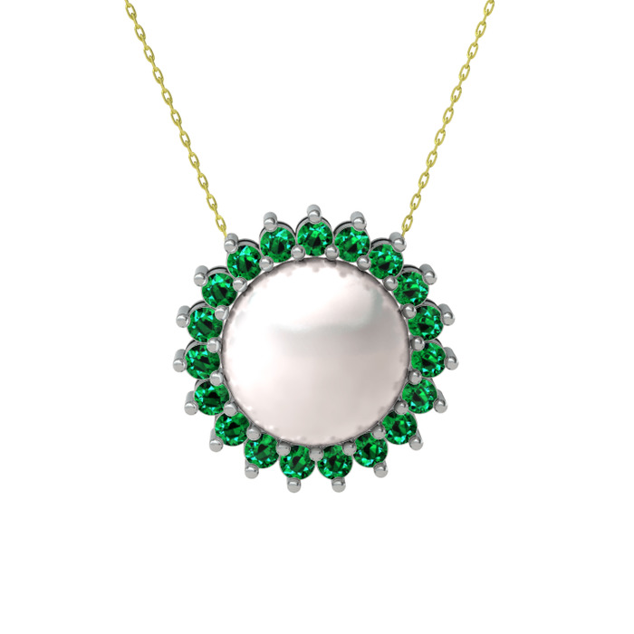 Inci ve yeşil kuvars 8 ayar beyaz altın kolye (40 cm altın rolo zincir)