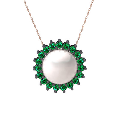 Inci ve yeşil kuvars 925 ayar siyah rodyum kaplama gümüş kolye (40 cm gümüş rolo zincir)