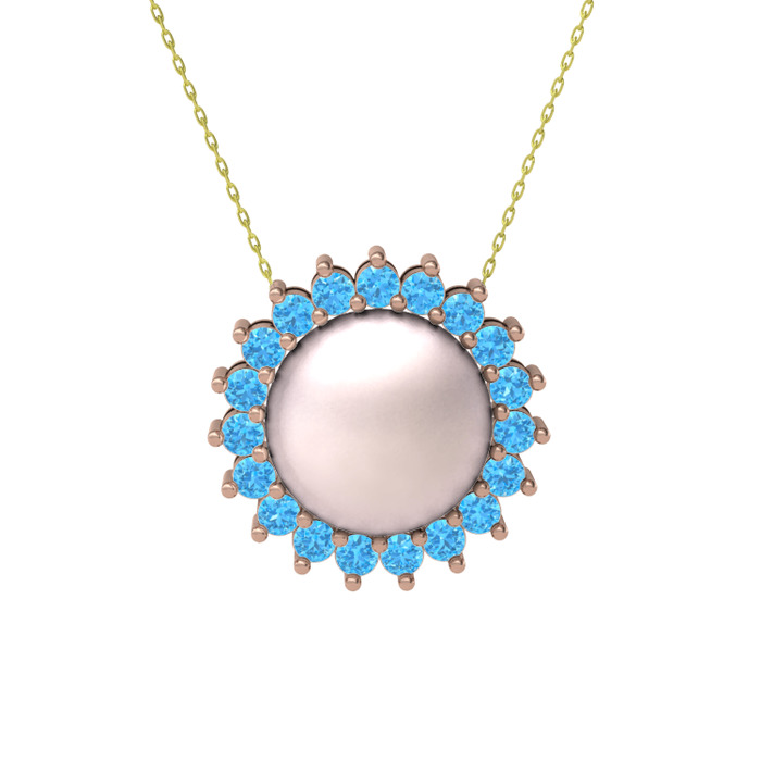Pembe inci ve akuamarin 14 ayar rose altın kolye (40 cm altın rolo zincir)