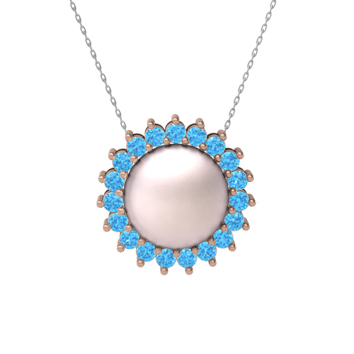 Pembe inci ve akuamarin 14 ayar rose altın kolye (40 cm beyaz altın rolo zincir)