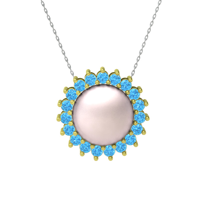 Pembe inci ve akuamarin 18 ayar altın kolye (40 cm beyaz altın rolo zincir)